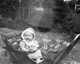 Här är mitt liv Idag den 12 september 2009 börjar ett underhållningsprogram i TV1, som heter Här är ditt liv och som skall ledas av Ingvar Oldsberg. För många år sedan gick det ett likadant program lett av Lasse Holmquist och det var väldigt trevligt. Då kom jag igår att tänka på att min brorson Mats-Inge har bett mig många gånger att skriva ner mitt liv och hur det var när jag var barn. Det har aldrig varit min starka sida att skriva brev eller annat trots mina många år på kontor, men skall göra ett försök. Jag har ju inte levt något spännande liv, tvärtom har det gått i oföretagsamhetens tecken, som Josef Anér skulle uttryckt det, men har man inte nerver för spänning så har man inte. Men det finns kanske en del fakta att skriva ner som ett barn idag skulle uppleva som helt otroligt. Jag börjar med min mamma. Idag är det svårt att tänka sig att när min mamma var ung (från 17 år) åkte hon ensam med häst och vagn från Olofstorp till Gamlestadstorget i Göteborg, ca 16 km, för att sälja ägg, höns och vad som var aktuellt för säsongen. Där fick hon som stamkunder Johanna och Hjalmar Bergkvist och de blev våra vänner för livet. De hade fyra flickor och två pojkar, och bodde åtta personer i en enrumslägenhet i Gamlestaden. Visserligen stort rum och stort kök och WC på svalen men inget tvättrum vad jag kommer ihåg. De fick tvätta både sig och småkläder i köket. Jag tror det fanns gemensam tvättstuga och badrum i källaren för alla hyresgästerna. Vänner för livet Under första världskriget var en av döttrarna, Märta, sommarbarn hos mor och far på Hallen. Det hände nog att Hanna och Hjalmar besökte Och så blev det. Det är bara ett sund mellan Hälsö och Trollholmen, så de kunde lätt göra en gångbro på det grundaste stället. Hjalmar byggde sommarstuga med mera i mitten av ön, dottern Hanna i början och dottern Emma strax före föräldrarna, dottern Märta längst bort. Lite senare byggde också sonen Viking en sommarstuga. De två andra barnen då? Jo. dottern Inga-Lisa blev änka efter ganska kort äktenskap bara fyra-fem år, den andra sonen var de ovänner med, så han bodde på sitt håll. Alla (?) på ön skaffade båtar som de åkte i till Göteborg och tillbaka. Men så kom kriget 1939 och snart fanns ingen bensin att köpa till båtarna. Från 1940 och framåt några år hyrde Märta och Ragnar och Hanna och Pelle hos oss på Ryd, samt ett par till som hette Viktor och Hilda. Om de var bekanta till Märta o Hanna vet jag inte eller om de var bekanta till mina föräldrar. I vilket fall fick sommargästerna besök av sina vänner ibland. Och nu till Marianne, vars mamma var väninna med Hanna, kom en dag med sina föräldrar och hälsade på. Då var jag nio år och Marianne sju år (1941) och vi blev vänner för livet. Vi har haft mycket roligt tillsammans så väl på Ryd som på Trollholmen. Vi umgicks ända fram till hennes bortgång den 11 juli 2020. Min uppväxt Men nu till saken om min uppväxt som Alf önskade, och eftersom jag är den sist levande personen i min familj, och att Alf digitaliserat mamma Mimmis glasplåtar som hon tog i början av 1900-talet, och som jag försökt namnge nu, så kommer jag så småningom citera avsnitt ur faster Esters memoarer som börjar redan år 1853 då min farmor Augusta föddes. Jag föddes 1932 på Solhem i Olofstorp. 1936 flyttade vi till Ryd. Varför? Det har jag skrivit om i samband med en bild som kallas ”Rydpanorama”. "Liten skitunge" Sedan när kvällen närmade sig kom mina syskon hem den ene efter den andre, utom Karl-Erik som flyttade hemifrån redan när han var 16 år dvs ca 1928-1929. När syskonen var hemma blev det ett tjatter vid middagsbordet. Då fick man inte en syl i vädret och ibland hade man något man ville säga men fick inte en chans och när man äntligen fick det så var de andra långt från ämnet. Det var så gång på gång. Som liten skitunge var jag ingen för killarna att lyssna på, och det var aldrig någon som frågade mig om något heller, men det begrep jag inte då. Men alla mina syskon var snälla mot mig vad jag minns, Yngve kunde ryta till ibland, men det var kanske befogat. När jag var elva år t ex och hade fått noter på Taubes Sjösala vals, satt tidigt en söndagsmorgon, och tränade och tränade så till slut kom Yngve, som låg i rummet ovanpå vardagsrummet där pianot stod, ilsken som ett bi och sa att nu får det vara slut med klinkandet, vi kan inte sova däruppe, åtminstone byt låt och spela lägre. Nästa gång han röt till var jag 14 år, han kom hem från jobbet, diskbänken var full av disk, jag la´ patiens när han röt till: Jag reste mig förskräckt och diskade med en gång. Han kunde också vara snäll och from som ett lamm. Allan, när han kommit hem från jobbet och hade ätit hade han som vana att varje gång sätta sig vid pianot och spelade (övade) på Aftonklockorna av A.F.Marzian. Det lät riktigt bra. Karl-Erik flyttade hemifrån när han var 16 år. Jag hade mycket respekt för honom hela livet. Det var han som tog hem alla bucklor man kan se på bilden från 1935 med Yngve och hyresgäst till vänster och Anna-Lisa Börjesson till höger sittande i soffan paneldivanen som var modern förr i tiden med en hylla på ryggstödet. De flesta priserna fick Karl-Erik som kartläsare på bilrallytävlingar. Jag tror han tävlade i motorcykeltävlingar också. Han hade många motorcyklar under tidens gång. Den sista var en stor en och den hade många hästkrafter. Han hade även med sidovagn och det var ROLIGT att åka med i den. När han blev äldre köpte han bilar, som han bytte ofta. 1954 köpte han en Austin Healy sportbil. Gissa om man var stolt när jag fick följa med Mayken på en åktur i Göteborg med suffletten nedfälld. De sista åren köpte Karl-Erik Honda, som han var mycket nöjd med, men bytta ofta till årets modell. Den sista Hondan köpte han när han var 86 å