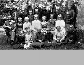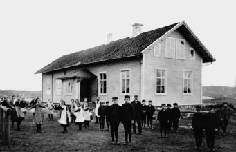 Skolorna i Bergum Fattigt folk har alltid fött många barn, inte bara i Sverige utan i hela världen. Den utmärkte läkaren, forskaren och pedagogen Hans Rosling har skrivit mycket om detta. Varken religion eller kultur har någon som helst betydelse för mängden barn, endast ekonomi. När man inte har en pension att se fram emot, när barnadödligheten är hög och man inte har medicinsk hjälp på flera mils håll, då föds det många barn. Det blir en sorts pensionsförsäkring. Men genom tiderna har en hög barnadödlighet också skapat en viss balans. Herrans tukt och förmaning Under 1800-talet observerade höga vederbörande i Sverige att antalet barn bland fattigt folk ökade kraftigt. Man anade framtida problem. Inte alls så att man kände något större medlidande med de fattiga, men man anade att de många kunde komma att ställa till problem för ordningen i samhället, kanske gadda ihop sig och resa sig mot makteliten. Och så kunde man inte ha det. I detta läge kunde man ju ha tänkt sig att förstärka ordningsmakten. Fler poliser och soldater bland folket. Men i stället valde man en något mer civiliserad väg, nämligen att se till att alla dessa fattiga skulle utbildas i herrans tukt och förmaning, tillhållas att vara nöjda med sin lott, och att aldrig, aldrig vara uppkäftiga mot överheten. Det var tanken bakom den allmänna folkskolan, som infördes 1842. Ja, och så skulle ungarna får lära sig att läsa, räkna, och lite historia och geografi. Det kunde kanske vara bra. Till exempel att kunna räkna så att man fick lika många mjölsäckar tillbaka från kvarnen som man fraktat dit. Och att få lära sig lite om Sveriges stolta men krigiska historia, gärna förskönande, för när som helst kunde nya utskrivningar till krigsmakten bli aktuella och då vore det bättre med villiga rekryter än ovilliga. Föräldraplikt att lära barnen läsa Skolor i Sverige var ingalunda något nytt. Bara i lärosätet Lund fanns det över 400 skolbyggnader på 1700-talet. Bildningen var väl spridd bland de högre klasserna. Men på andra håll i landet var det sämre beställt med bildningen och folkskolan mötte hårt motstånd från stora folkgrupper, som inte ville att deras barn skulle indoktrineras av överheten. Mot slutet av 1800-talet fanns det gott om socknar där inte ens hälften av barnen var inskrivna. Sedan 1700-talet fanns det också en lag som sade att föräldrar var skyldiga att lära sin barn läsa. Därför förutsatte man att alla som började i folkskolan skulle ha vissa förkunskaper. Det visade sig sämre med den saken, därför infördes också småskolor, där barnen fick lära sig de elementa som krävdes för att börja i folkskolan. "Nej!", sade stämman Hur var det då i Bergum? Jo, precis som i många andra landsförsamlingar var det en hårt motstånd. Bygga skola och anställa lärare, var skulle man ta de pengarna ifrån? Det dög gott med de två skolmästare - en på vardera sidan om ån - som vintertid gick omkring och under visade barnen. Skolmästarna kunde "försvarligt" läsa och skriva. Den ene kunde till och med räkna lite! Detta kunde gott räcka, tyckte sockenstämman 1843. Prästen förklarade att lagen föreskrev att det skulle finnas både byggnad, utbildad lärare, samt lön till densamme. Det hade man inte på villkors vis pengar till. Riksdagen bjuder till 1845 tog riksdagen ett beslut om skattelättnader - under förutsättning att samma belopp istället gick till folkskolans utbyggnad. Varje mantalsskriven man fick betala tolv skilling banco till skolan istället för till staten. För kvinnor gällde sex skilling. Denna skatteväxling (som det skulle komma att kallas 150 år senare) gav snabbt resultat i Bergum. På en sockenstämma samma år, september 1845, avgav man ett löfte om att anställa en rask yngling vid namn Johan Larsson från Bergum Stom, väl känd och omtyckt, till att vara församlingens klockare samt ambulatorisk skolmästare. Därtill skulle församling ge honom ett visst underhåll "till nödig lärdoms inhämtande", vilket skulle ske innan anställning kom till stånd. Därtill tog man beslut om att äntligen bygga ett skolhus, där man kunde ha undervisning. Ett klassrum, samt två rum och kök till läraren. "Njaa", sade stämman Alltnog, efter några års tjat och gnat från båda sidor togs allt fler beslut som undan för undan förbättrade skolans ställning hos de motvilliga skattebetalarna. Så vid tredje eller fjärde gången efter att förslaget väckts brukade det gå igenom. Under sex år efter folkskolans införande hade Bergum fortfarande ingen skolbyggnad. Istället hyrde man in skolverksamheten hos bönderna. De som ställde upp fick betalt för det, de som inte ställde upp fick betala en extra skatt. På sockenstämman i september 1845 enades man om att bygga ett skolhus på tomten öster om kyrkan. Tomten inköptes för tre riksdaler och bygget tog sin början på sommaren 1847, och engagerade stora delar av församlingen, som tillhölls att leverera timmer, virke, spik, skruv, mossa (isolering) och mycket annat. Den snälle krögaren i Borås En intressant parentes uppenbaras i juli 1849, då pastorn i Bergum meddelar domkapitlet att Bergums skola har fått en donation om 500 riksdaler. (Hela skolbygget kostade mindre än 1000 riksdaler.) Syftet med donationen var hjälp till fattiga barns skolgång, och ditintills hade åtta fattiga barn fått hjälp från donationen. Den kom från "traktören Berggren i Borås". Men vem var denne långväga restaurangägare? Varför hade han en förkärlek för fattiga barn i Bergum? (Jag googlade, men fick bara upp en massa traktorförsäljare i Borås. Tiderna förändras, liksom språket.) INFO: Research pågår, vi kommer med mera text om små- och folkskolan inom kort. Nytt stort skolhus i Olofstorp Vid början av 1900-talet fanns det två skolor i Bergum, Kyrkskolan, granne med kyrkan, och Torvhögs skola. De hade ett klassrum var